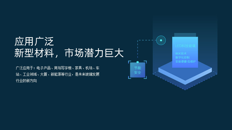 科技玻璃廣泛應(yīng)用于:電子產(chǎn)品、商場(chǎng)寫(xiě)字樓、家具、機(jī)場(chǎng)、車(chē)站、工業(yè)領(lǐng)域、大廈、新能源等行業(yè),是未來(lái)玻璃發(fā)展行業(yè)的新方向。